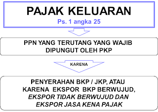 Pajak Keluaran adalah Pajak Pertambahan Nilai terutang yang wajib dipungut oleh Pengusaha Kena Pajak yang melakukan penyerahan Barang Kena Pajak, penyerahan Jasa Kena Pajak, ekspor Barang Kena Pajak Berwujud, ekspor Barang Kena Pajak Tidak Berwujud dan/atau ekspor Jasa Kena Pajak.