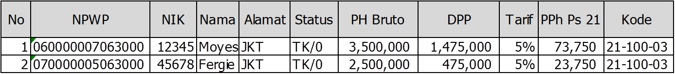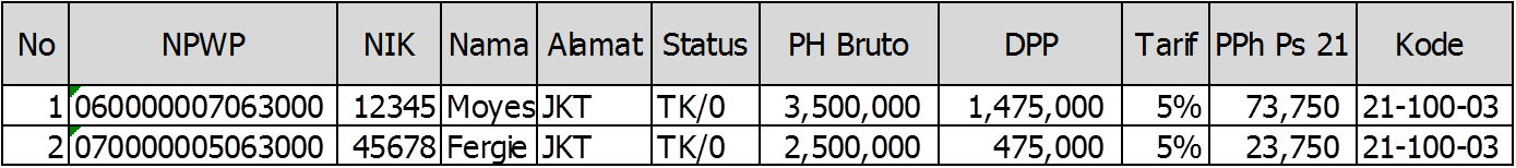 Data Pemotongan PPh Pasal 21 atas Pegawai Tetap, ada pegawai Berhenti di tengah tahun