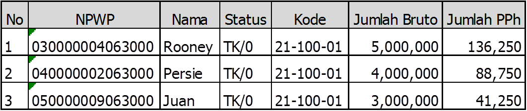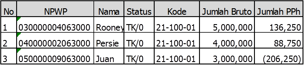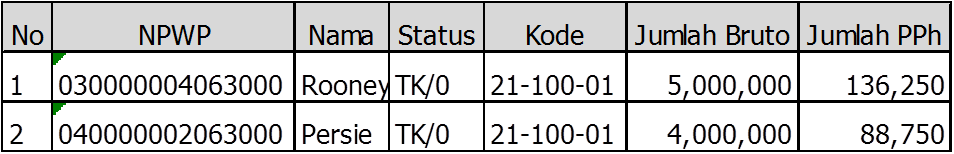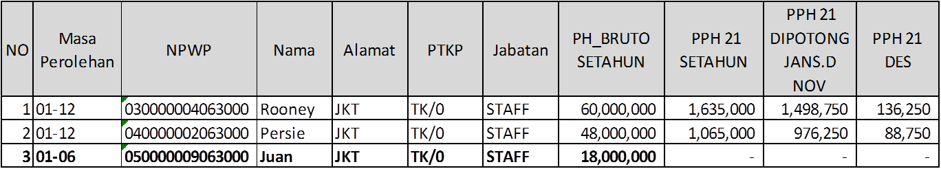 - Kelebihan pemotongan PPh Ps 21 sebesar 206.250 dikompensasikan dengan PPh Pasal 21 Rooney dan Persie