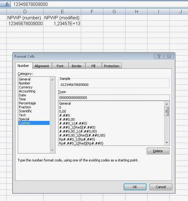 - pastikan setting pada Regional Options adalah Indonesia dulu Pak, karena kalau belum Indonesia antara "." dan "," saja sudah bermasalah. Kemudian NPWP harus custom dan NPWP jangan format text, pilih yang angka 0, trus 0 nya dibuat 15X